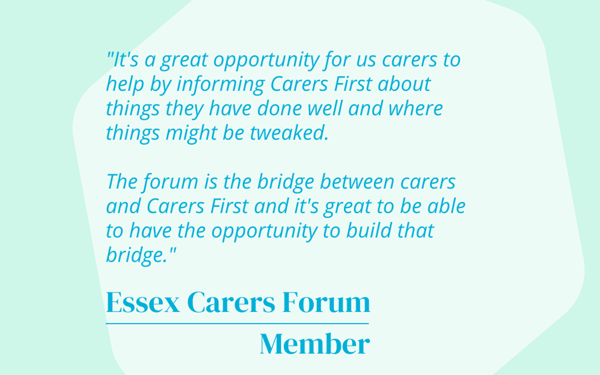 Our Essex Carers Forum is made up of carers, former carers, and staff who meet online four times a year, to decide on themes and future projects. Staff with specialist skills or external professionals are often invited to address the forum in regards to popular and common themes that carers raise.